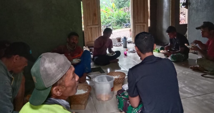 Momen Tak Terlupakan Bagi Warga Saat Makan Siang Bersama Satgas TMMD Ke-115 Kodim 0612/Tasikmalaya
