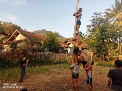 ” Kerja sama dibutuhkan dalam perlombaan Panjat Pinang, sehingga dapat meraih puncak atas yang sudah tersedia beraneka ragam hadiah.”, pungkasnya