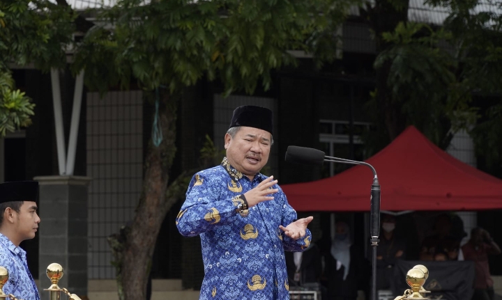 “1.8 Triliun itu gaji guru itu ada 600 miliar, BOS (Bantuan Operasional Sekolah) itu 350 miliar, sertifikasi 350 miliar. Nggak ada (yang ke infrastruktur), iya untuk pegawai 1.8 triliun, makanya untuk infrastruktur itu kita butuh 100 miliar,” ujar Bupati Garut seusai memimpin Apel Gabungan, di Lapang Sekretariat Daerah (Setda) Garut, Jalan Pembangunan, Kecamatan Tarogong Kidul, Kabupaten Garut, Senin (17/10/2022).