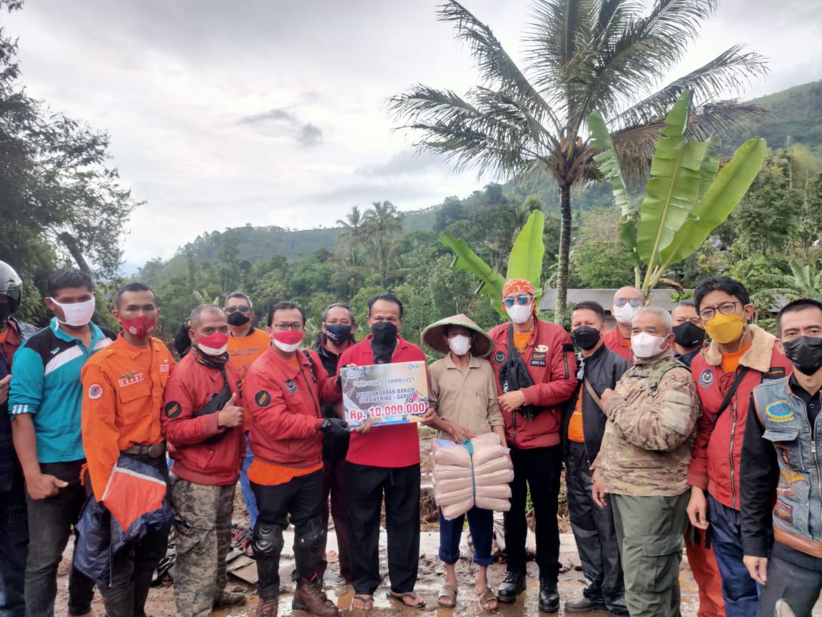 Mengusung tema bjb Vespa Community Peduli Korban Banjir Sukawening, komunitas vespa tersebut menyalurkan bantuan berupa uang sebesar Rp10 juta yang diserahkan kepada perwakilan warga Kampung Cileles, Desa Cintamanik Sukawening, Kabupaten Garut, Sumara.