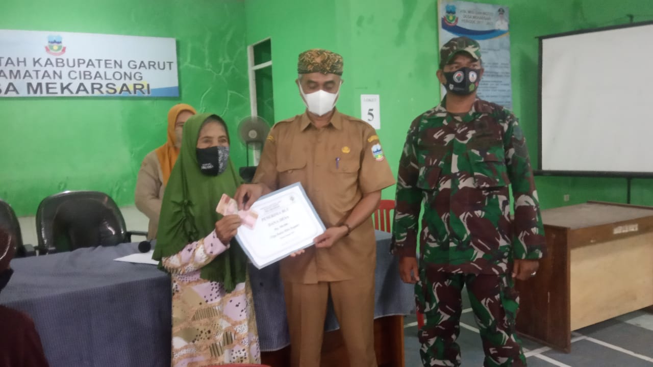 PURNAYUDHA.COM – Bertempat di aula gedung serba guna Desa Mekarsari Kecamatan Cibalong Kabupaten Garut, Bantuan Langsung Tunai (BLT) Dana Desa (DD) untuk wilayah Desa Mekarsari disalurkan pada Senin, (12/4/2021).