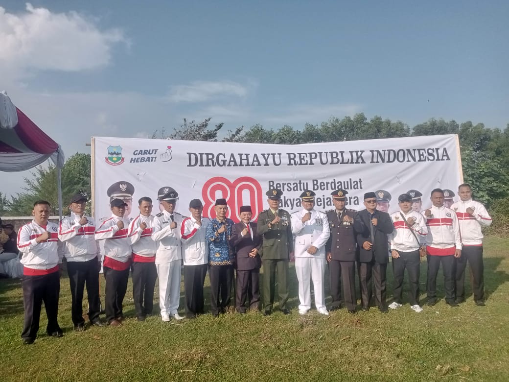 Purnayudha.com, Garut-Forkopimcam Cibalong Gelar Upacara Dirgahayu Republik Indonesa ke 80 ,Bersatu Berdaulat Rakyat Sejahtera Indonesa Maju. Di lapang Bola Karang Paranje kecamatan Cibalong kabupaten Garut tepat di jalan Miramareu Jawa Barat.2025, Minggu, 17/08/2025.