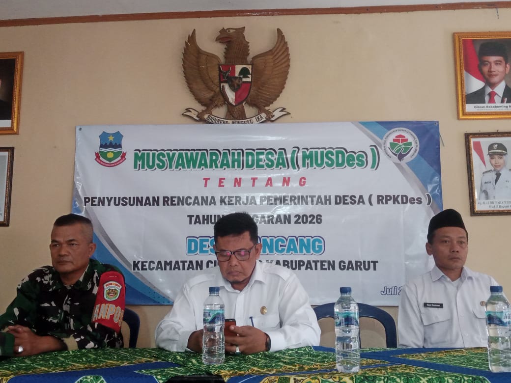 Purnayudha.com, Garut-Forkopimcam cibalong hadiri musyawarah ( MUSDes ) penyusunan Rencana kerja pemerintah Desa ( RKPDes) tahun anggaran 2026. Teoat Di Aula kantor Desa Sancang kecamatan Cibalong Kab Garut,30/07/2025.