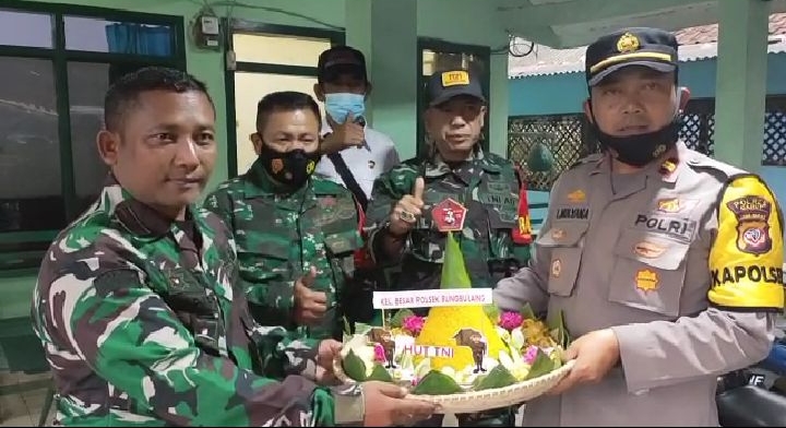 Pada kunjungan tersebut Kapolsek Bungbulang dipimpin lptu Endang Mulyana menyerahkan hadiah Tumpeng sebagai kado di HUT TNI ke 76 kali ini.