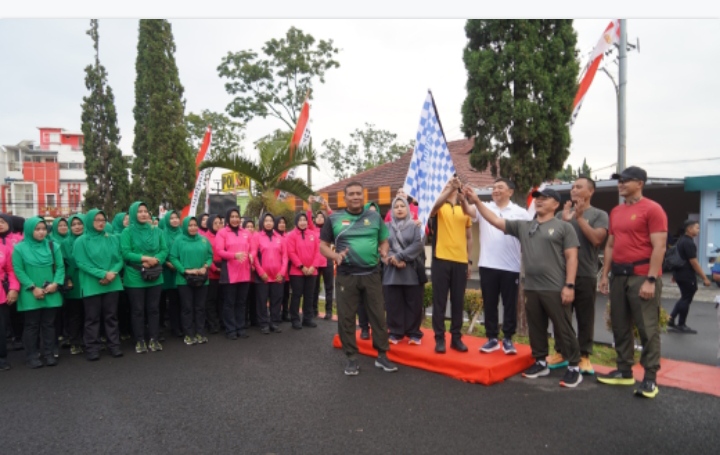 Garut.Purnayudha – Kasrem 062/Tn Letkol Inf Hamzah Susanto., S.E., menghadiri olahraga bersama dalam rangka memperingati HUT Bhayangkara ke 79 tahun 2025 di Mapolres Garut, Jalan Jenderal Sudirman no. 204,Kel. Suci Kaler, Kec. Karangpawitan, Kab Garut. Senin (30/06/2025).