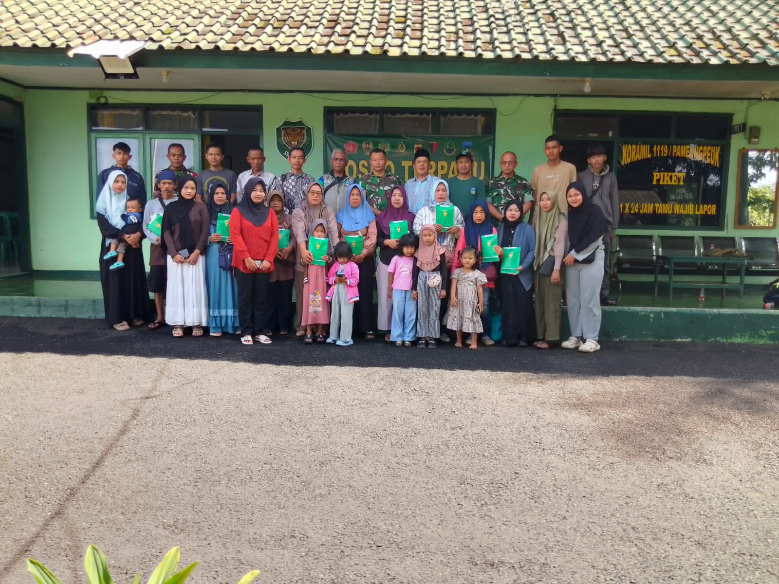 Bungkus Suryaman, Kepala Desa Jatimulya Jaenal Muttakin, serta ahli waris korban musibah pemusnahan Muhandak.*(Penrem062/Tn)*