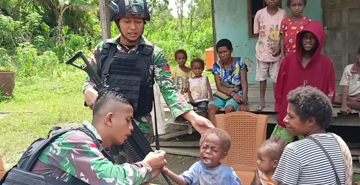 PATRIOT KESEHATAN DI PERBATASAN PAPUA, SATGAS YONIF 126/KC BERIKAN PELAYANAN KESEHATAN GRATIS SECARA MASIF