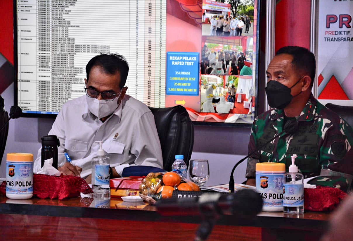 Dalam sambutan dan pengarahan tiga Menteri dan Kapolri diantaranya menyampaikan, agar mewaspadai saat mudik di Rest Area makan, buka masker saat makan harus diimbangi dengan jaga jarak, dan terus melaksanakan vaksinasi bagi Lansia di Jabar ditingkatkan.