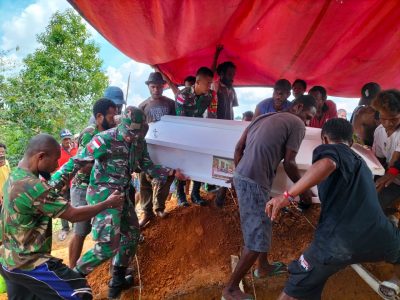 PURNAYUDHA.COM Papua, –Sebagai wujud rasa turut berduka cita terhadap masyarakat yang sedang mengalami musibah, Satgas Yonif 126/KC Pos Ubrub melayat dan membantu proses pemakaman jenazah almarhum Hengki Debem (46) di Kampung Umuaf, Distrik Web, Kab. Keerom.