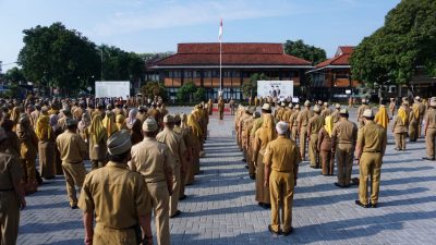 PURNAYUDHA.COM – Sekretaris Daerah (Sekda) Garut, Nurdin Yana menyerahkan Piagam Penghargaan Bupati Garut kepada 6 kecamatan tercepat lunas Pajak Bumi dan Bangunan (PBB) Perdesaan dan Perkotaan Tahun 2022, bersamaan dengan apel gabungan terbatas yang diselenggarakan di Lapangan Sekretariat Daerah, Jalan Pembangunan, Kecamatan Tarogong Kidul, Kabupaten Garut, Senin 5 September 2022