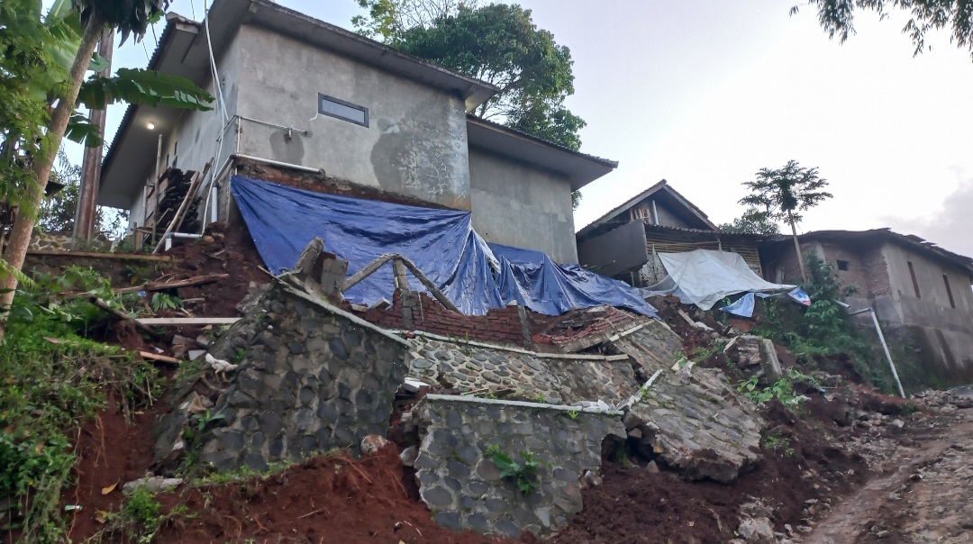Hujan Deras TPT Setinggi 10 Meter Longsor Ancam 3 Rumah Warga di Singajaya